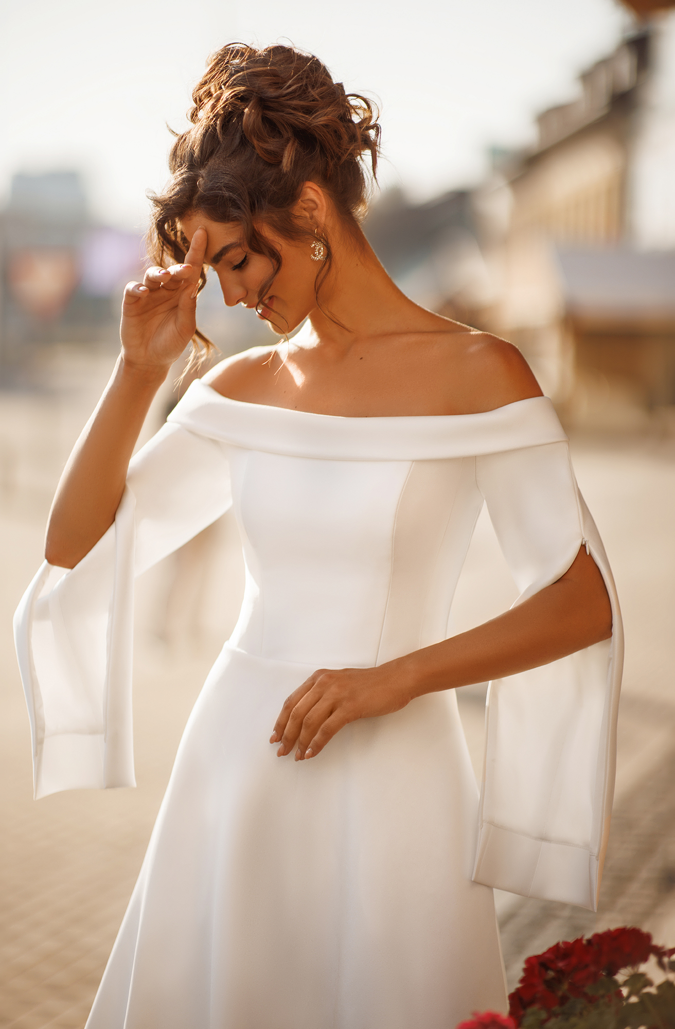 - Особенности: Спущенные плечи, Рукава-крылышки, Открытые плечи