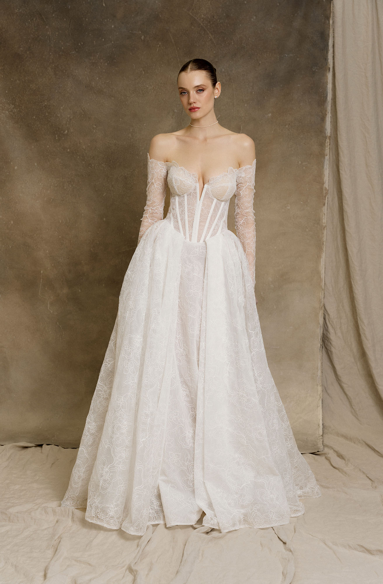 - Рукава: Кружевные, Спущенные, Длинные